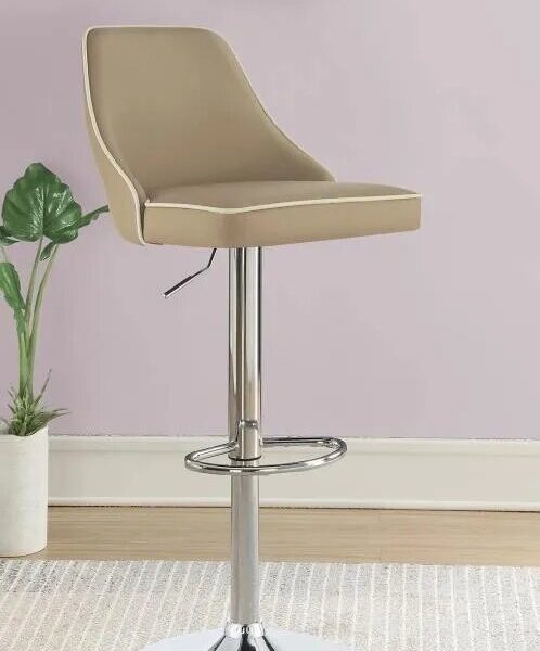 Silla de bar regulable en altura acabado en metal y tapiz.